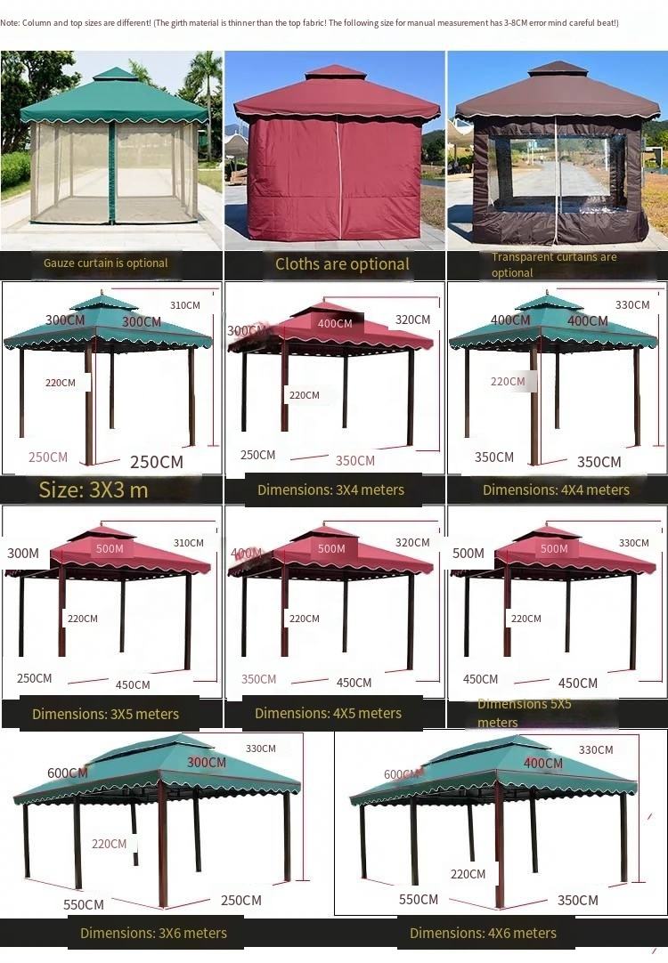 | Plusieurs tailles | 3X3m,3X4m,4X4m,3X5m,5X5m,3X6m,4X6m |